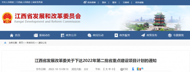 10月13日,江西省發(fā)展改革委關(guān)于下達(dá)2022年第二批省重點(diǎn)建設(shè)項目計劃的通知,重點(diǎn)項目合計115項。