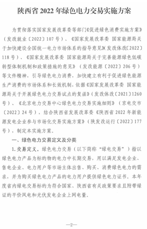 陜西省2022年綠色電力交易實施方案發(fā)布!