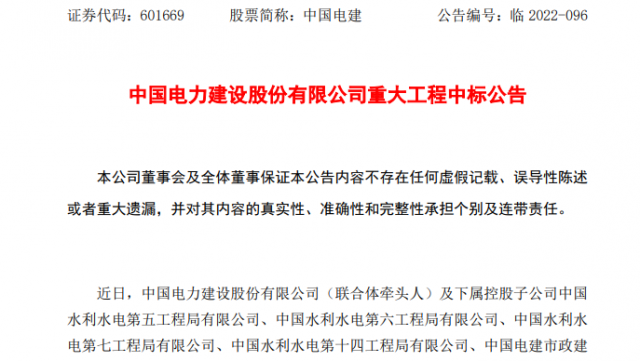 上述聯(lián)合體成員包括中國(guó)水利水電第五、第六、第七、第十四工程局,以及中國(guó)電建市政建設(shè)集團(tuán)有限公司與上海電力建設(shè)有限責(zé)任公司、四川公路橋梁建設(shè)集團(tuán)有限公司。