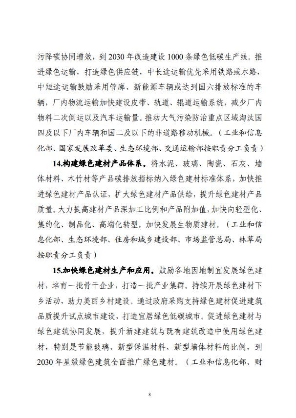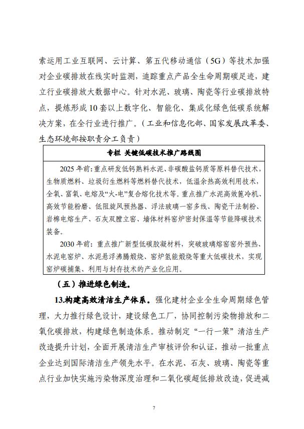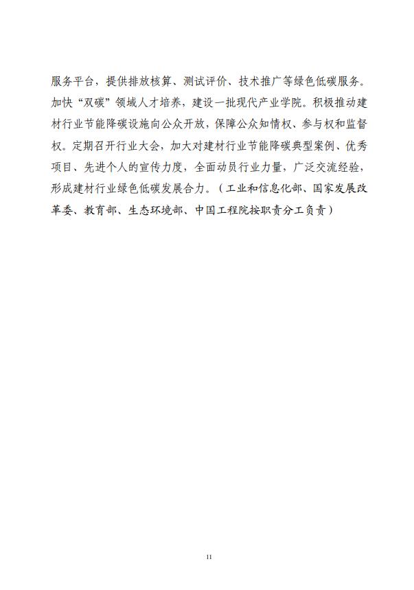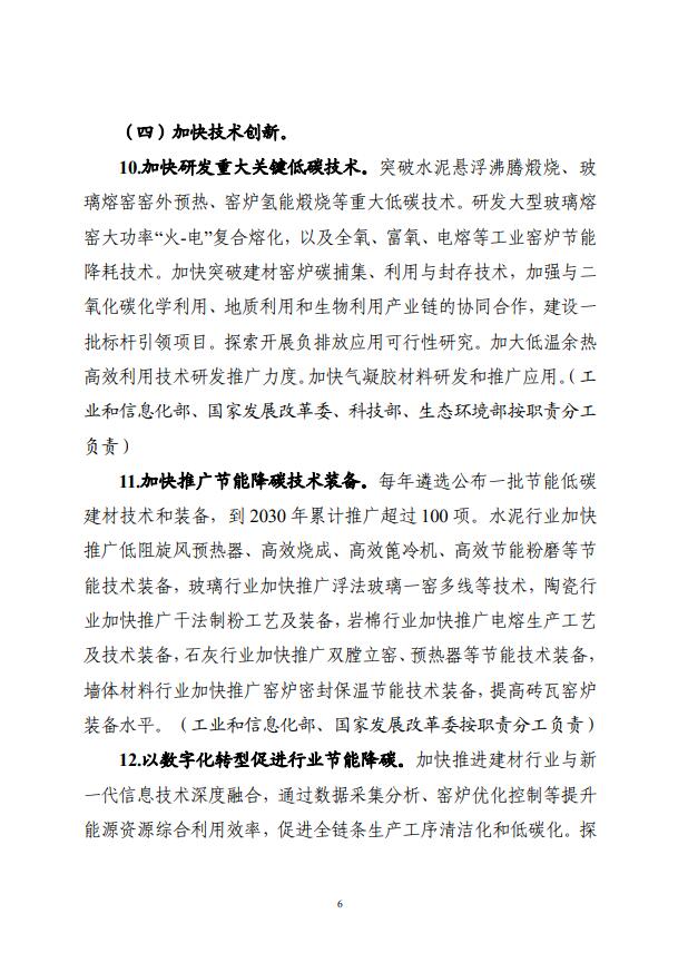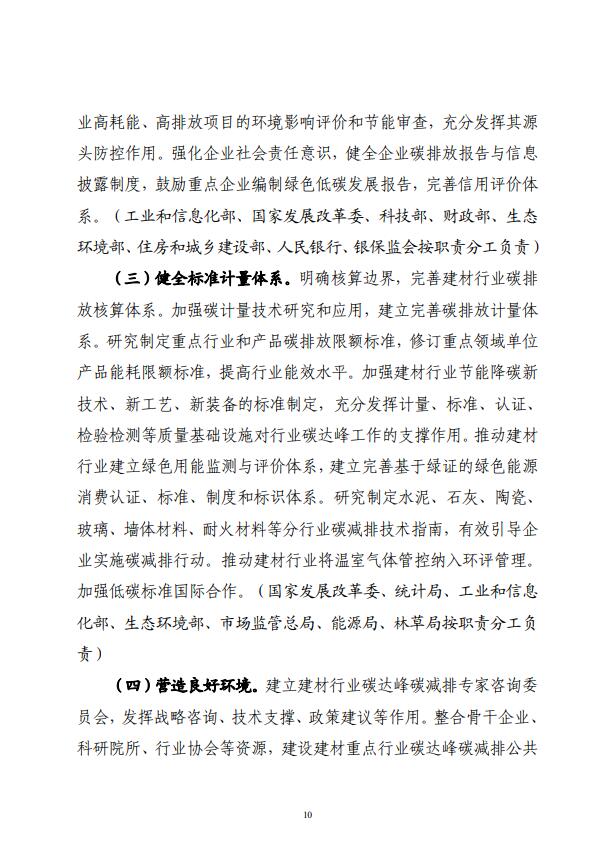 四部門關(guān)于印發(fā)建材行業(yè)碳達(dá)峰實(shí)施方案的通知