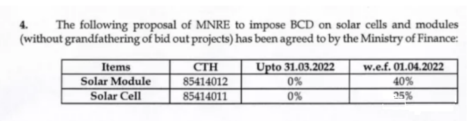 印度太陽能制造商協(xié)會(ISMA)請?jiān)柑岢龊?,印度政府?022年4月1日起對光伏電池和組件分別征收25%和40%的基本關(guān)稅,征收的關(guān)稅涵蓋了被調(diào)查產(chǎn)品的整個范圍,一定程度上緩解了印度本土光伏行業(yè)的價格壓力。