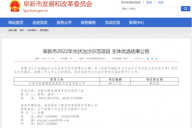 阜新市2022年光伏治沙示范項(xiàng)目 主體優(yōu)選結(jié)果公告
