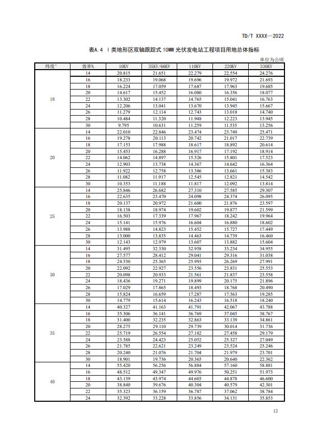 12月5日,自然資源部發(fā)布“《光伏發(fā)電站工程項(xiàng)目用地控制指標(biāo)》等3項(xiàng)行業(yè)標(biāo)準(zhǔn)報批稿公示”,文件指出:光伏發(fā)電站工程項(xiàng)目用地總體指標(biāo)按Ⅰ類地形區(qū)、Ⅱ類地形區(qū)、Ⅲ類地形區(qū)分別計(jì)算。光伏發(fā)電站工程項(xiàng)目處于兩個或兩個以上地形區(qū)時,應(yīng)根據(jù)不同地形區(qū)分別計(jì)算用地規(guī)模,再累計(jì)得出總用地面積。項(xiàng)目用地總面積應(yīng)符合各地形區(qū)用地總體指標(biāo)之和的規(guī)定。