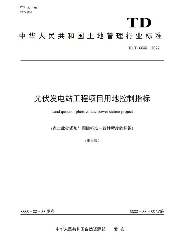 《光伏發(fā)電站工程項(xiàng)目用地控制指標(biāo)》等3項(xiàng)行業(yè)標(biāo)準(zhǔn)報批稿公示