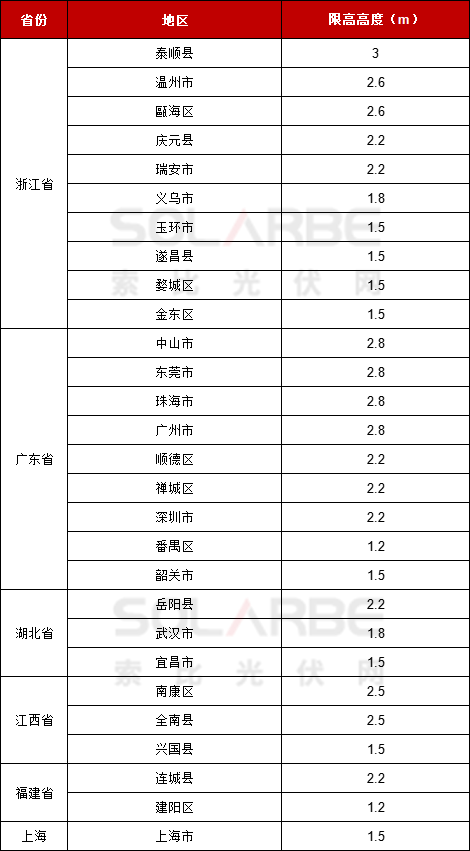 例如,為保障項目安全,浙江、廣東、湖北、江西、上海等地區(qū)對光伏在屋頂安裝的高度,做出了明確的規(guī)定。