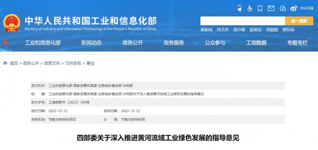 12月12日,工信部、國家發(fā)改委、住建部、水利部四部委發(fā)布《關(guān)于深入推進黃河流域工業(yè)綠色發(fā)展的指導意見》。
