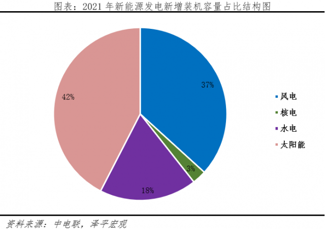 光伏是新能源發(fā)電端建設(shè)的核心領(lǐng)域之一,中電聯(lián)數(shù)據(jù)顯示,2021年我國(guó)太陽能新增裝機(jī)容量為54930兆瓦,同比增長(zhǎng)14.0%,占新能源發(fā)電新增裝機(jī)總?cè)萘康?2%。