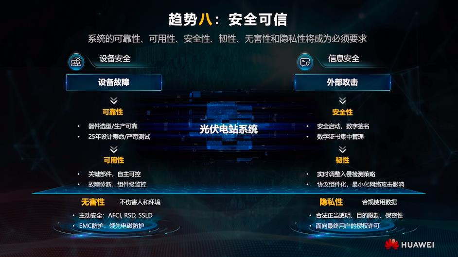華為此次重磅發(fā)布涵蓋智能光儲(chǔ)發(fā)電機(jī)、組串式儲(chǔ)能、電芯級精細(xì)管理、安全可信、全面數(shù)字化、AI增效等在內(nèi)的十大趨勢,展望和引領(lǐng)光伏行業(yè)的未來發(fā)展趨勢,通過技術(shù)創(chuàng)新實(shí)現(xiàn)電網(wǎng)增強(qiáng)、安全可靠、高效運(yùn)維等,推動(dòng)光伏成為未來的主力能源。