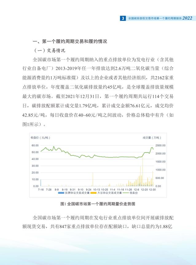 1月1日,生態(tài)環(huán)境部消息,為系統(tǒng)總結(jié)全國碳排放權(quán)交易市場(以下簡稱:全國碳市場)第一個履約周期建設(shè)運(yùn)行經(jīng)驗(yàn),促進(jìn)社會各界更好了解全國碳市場建設(shè)情況,生態(tài)環(huán)境部組織編制了《全國碳排放權(quán)交易市場第一個履約周期報告》。