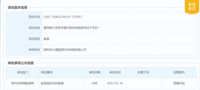 1月16日,國(guó)家能源集團(tuán)國(guó)電電力蒙西鄂爾多斯采煤沉陷區(qū)300萬(wàn)千瓦光伏項(xiàng)目取得備案證明。