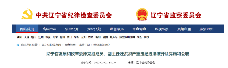 日前,經(jīng)遼寧省委批準,遼寧省紀委監(jiān)委對省發(fā)展和改革委原黨組成員、副主任,省能源局原局長汪洪溟嚴重違紀違法問題進行了立案審查調查。