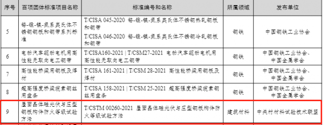 依據(jù)工信部函【2022】272號--工業(yè)和信息化部關(guān)于公布2022年團體標準應用示范項目的通告,中關(guān)村材料試驗技術(shù)聯(lián)盟(CSTM)發(fā)布的標準《屋面晶體硅光伏與壓型鋼板構(gòu)件防火等級試驗方法》(T/CSTM 00260-2021)入圍2022年團體標準應用示范項目。