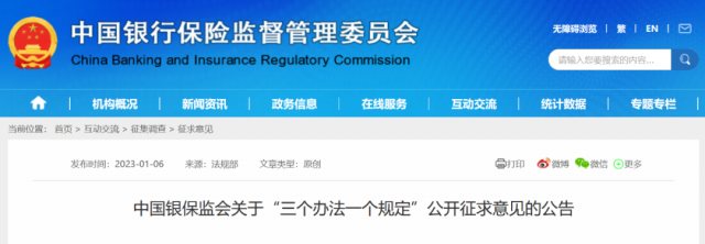 近日,中國銀保監(jiān)會發(fā)布關(guān)于“三個辦法一個規(guī)定”公開征求意見的公告。