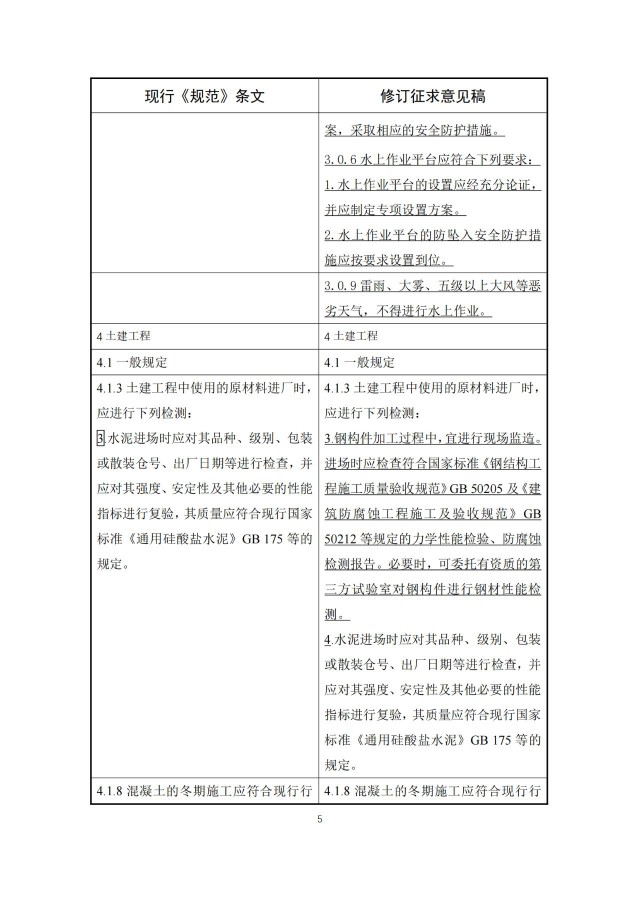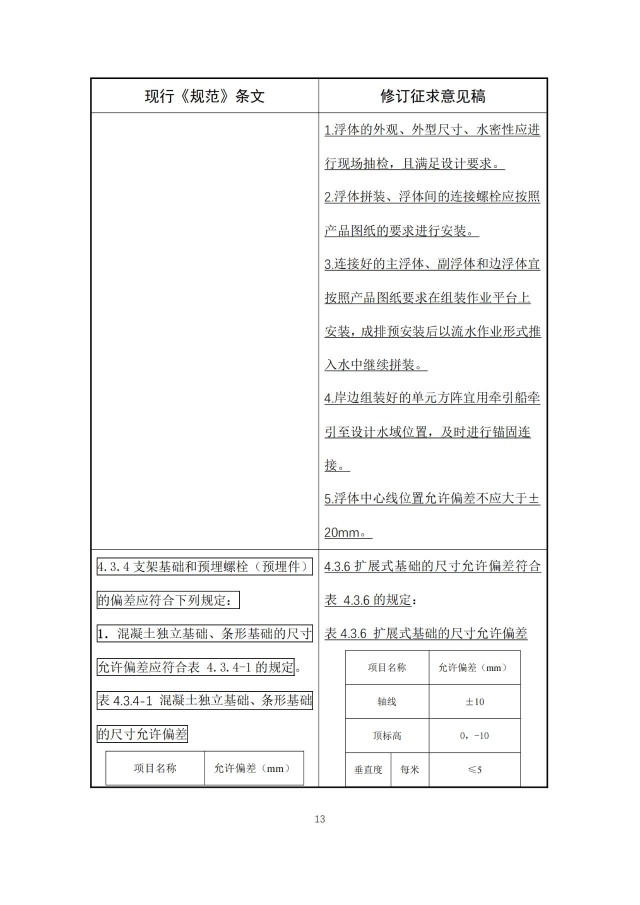 根據(jù)局部修訂條文對照表,新增水上光伏測繪、施工以及安全等一系列要求。例如,水上光伏發(fā)電站水下測繪工作應完成,水下障礙物應全部清理完畢。如施工場地有航道交叉,應采取相應安全保障措施。對于水面作業(yè)、作業(yè)面高度在2m及以上、作業(yè)面坡度大于30゜等特殊作業(yè)環(huán)境的項目,應編制專項施工方案,采取相應的安全防護措施。水上作業(yè)平臺應符合下列要求:1.水上作業(yè)平臺的設置應經(jīng)充分論證,并應制定專項設置方案。2.水上作業(yè)平臺的防墜入安全防護措施應按要求設置到位。