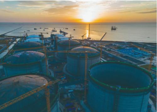 中海油鹽城綠能港一期擴建工程10號LNG儲罐順利升頂?shù)轿弧?br />