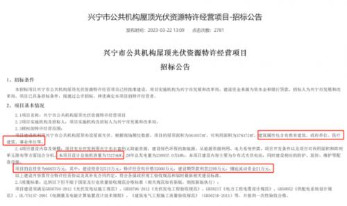 以興寧市招標(biāo)公告為例,招標(biāo)公告顯示,興寧市公共機(jī)構(gòu)屋頂光伏資源特許經(jīng)營范圍為利用公共機(jī)構(gòu)屋頂布設(shè)屋頂光伏,規(guī)模為75.274MW,項(xiàng)目的總投資為66833萬元,其中:建設(shè)投資32513萬元,特許經(jīng)營權(quán)價格32000萬元,建設(shè)期貸款利息2299萬元,鋪底流動資金21萬元。按照這一數(shù)據(jù)折算,興寧市整縣光伏單瓦投資成本為8.88元/瓦,對應(yīng)的特許權(quán)經(jīng)營費(fèi)為4.25元/瓦。