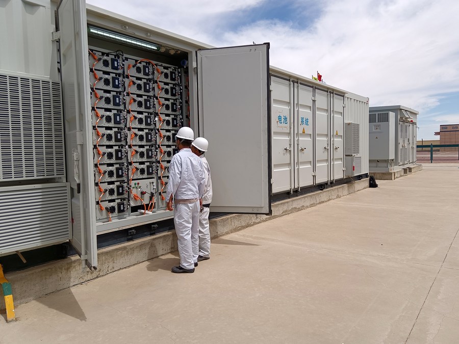 7月6日,工作人員在內(nèi)蒙古自治區(qū)錫林郭勒盟蘇尼特右旗20萬千瓦牧光儲綜合示范項目現(xiàn)場進(jìn)行巡檢。新華社發(fā)(郭玉軍 攝)