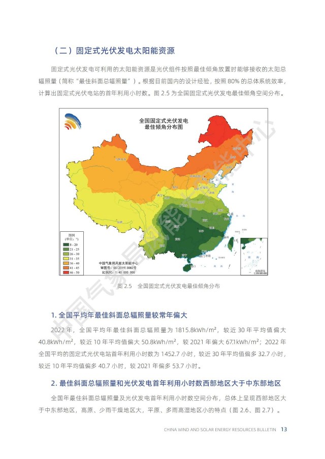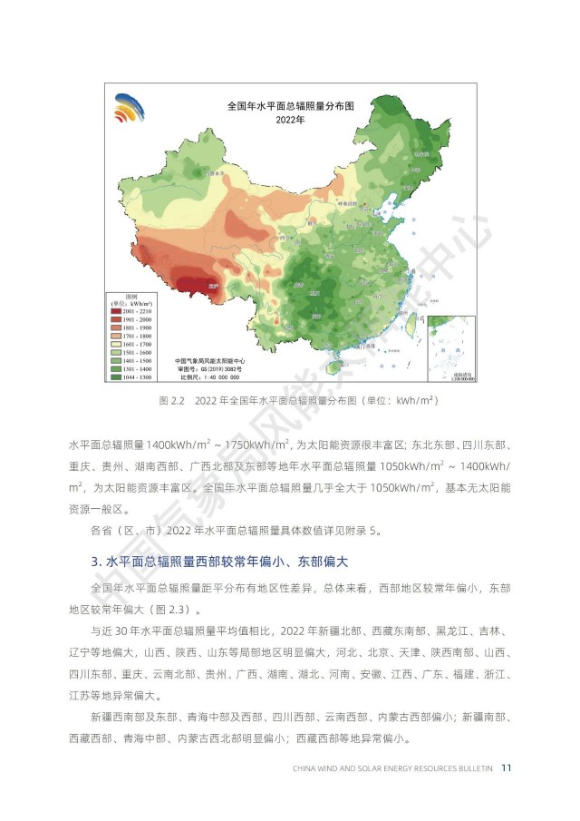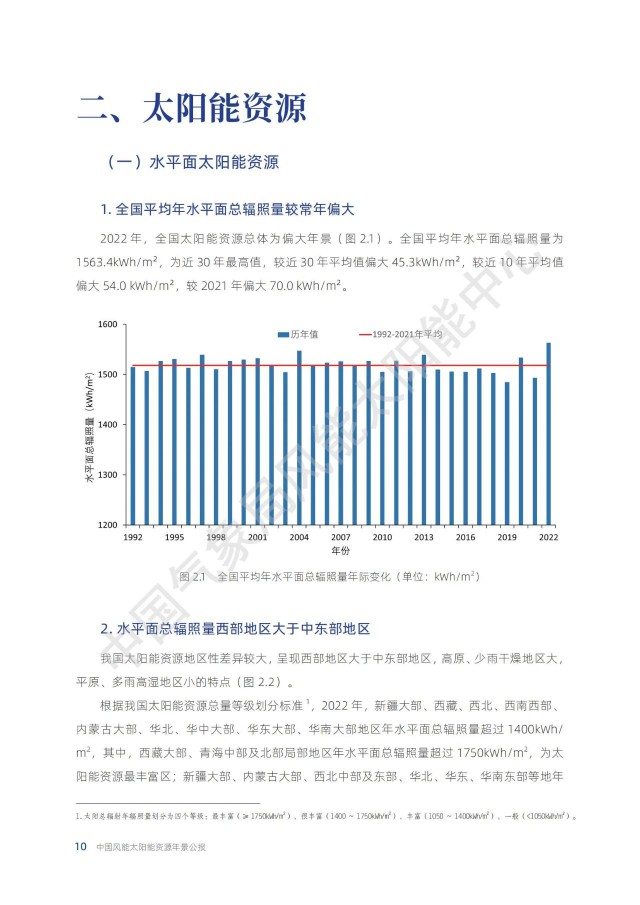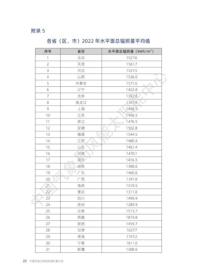 根據(jù)中國(guó)氣象局公布的《2022年中國(guó)風(fēng)能太陽能資源年景公報(bào)》,太陽能資源每年都會(huì)發(fā)生變化。其中,2022年為太陽能資源大年,全國(guó)平均的年水平面總輻射量比近30年平均值高出約3%。因此,2022年的光伏發(fā)電量應(yīng)該普遍偏好!