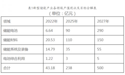 文件明確,到2027年,新型儲(chǔ)能產(chǎn)業(yè)產(chǎn)值規(guī)模超500億元,儲(chǔ)能電池產(chǎn)能達(dá)40GWh,新型儲(chǔ)能電站裝機(jī)規(guī)模達(dá)260萬(wàn)千瓦以上。力爭(zhēng)培育產(chǎn)值超過(guò)100億元企業(yè)1家以上,超50億元企業(yè)5家以上,超10億元企業(yè)10家以上。