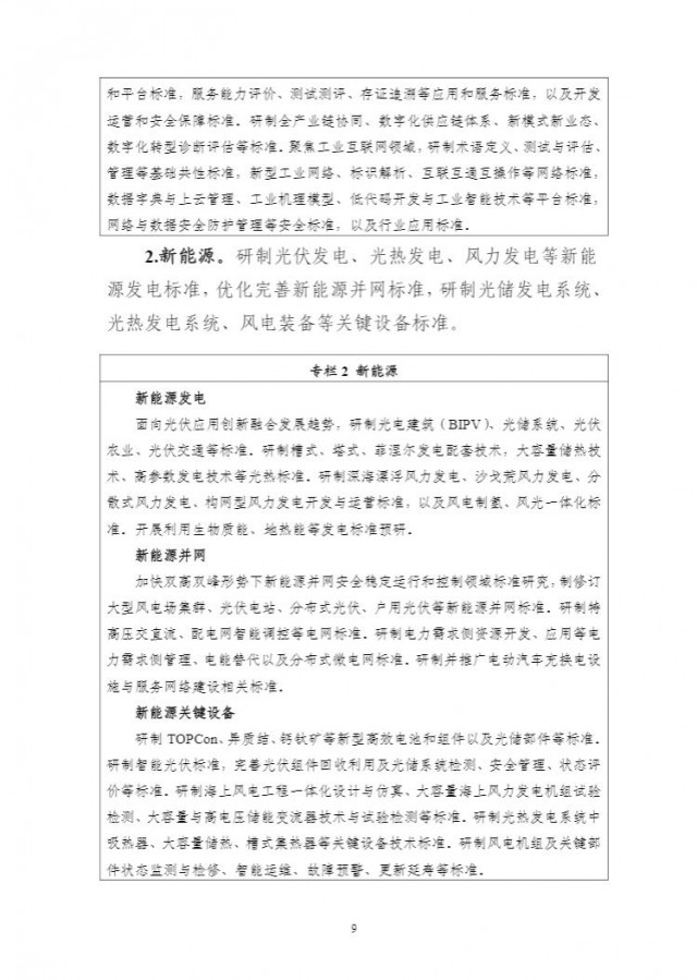 在新能源方面:研制光伏發(fā)電、光熱發(fā)電、風(fēng)力發(fā)電等新能源發(fā)電標(biāo)準(zhǔn),優(yōu)化完善新能源并網(wǎng)標(biāo)準(zhǔn),研制光儲(chǔ)發(fā)電系統(tǒng)光熱發(fā)電系統(tǒng)、風(fēng)電裝備等關(guān)鍵設(shè)備標(biāo)準(zhǔn)。