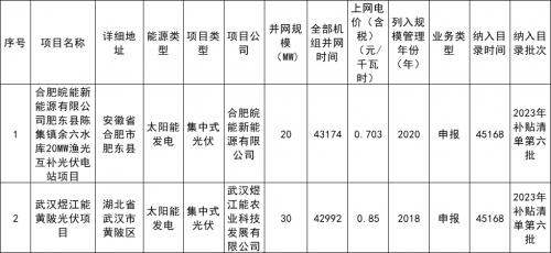 2023年第六批可再生能源發(fā)電補貼項目清單公布