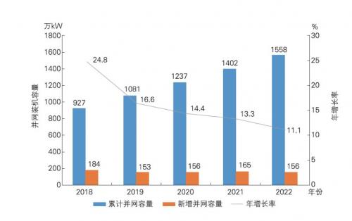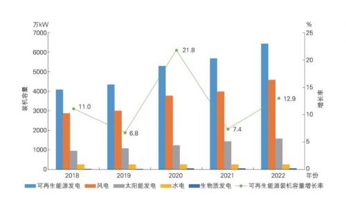 2018-2022年可再生能源裝機(jī)容量及年增長率變化對比