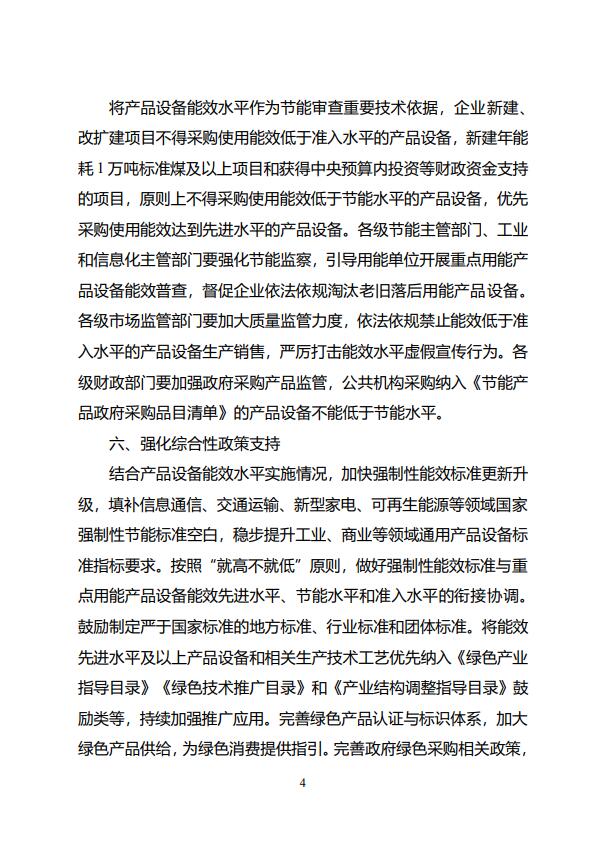 結(jié)合產(chǎn)品設(shè)備能效水平實(shí)施情況,加快強(qiáng)制性能效標(biāo)準(zhǔn)更新升級,填補(bǔ)可再生能源等領(lǐng)域國家強(qiáng)制性節(jié)能標(biāo)準(zhǔn)空白,穩(wěn)步提升工業(yè)、商業(yè)等領(lǐng)域通用產(chǎn)品設(shè)備標(biāo)準(zhǔn)指標(biāo)要求。