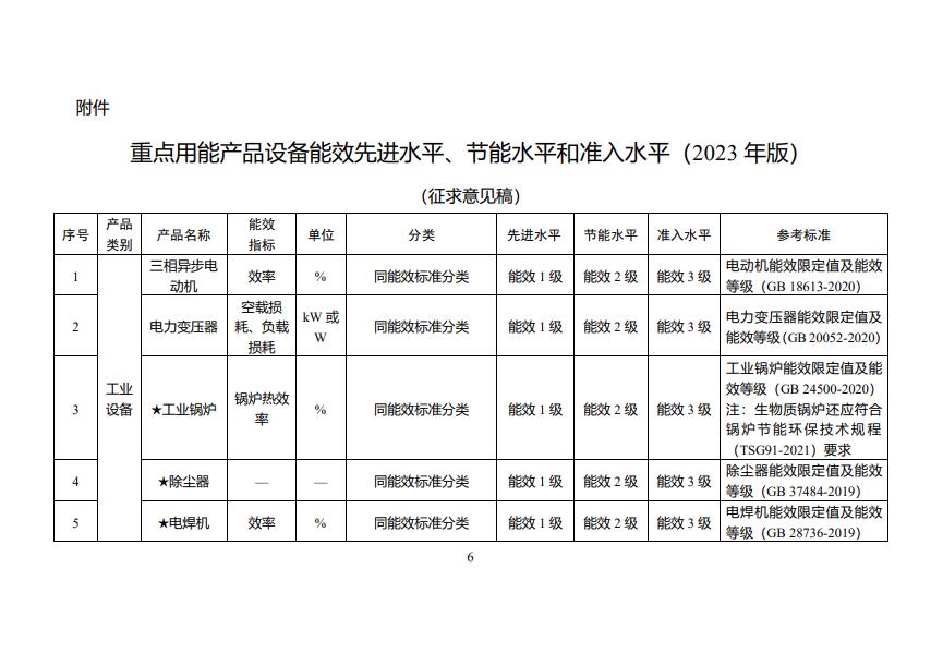 附件:關(guān)于發(fā)布《重點(diǎn)用能產(chǎn)品設(shè)備能效先進(jìn)水平、節(jié)能水平和準(zhǔn)入水平(2023年版)》的通知(征求意見稿)