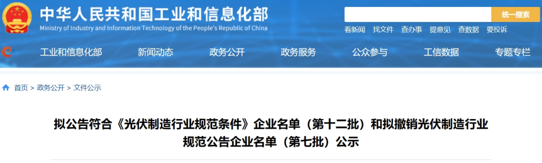 擬公告符合《光伏制造行業(yè)規(guī)范條件》企業(yè)名單(第十二批)和擬撤銷光伏制造行業(yè)規(guī)范公告企業(yè)名單(第七批)公示