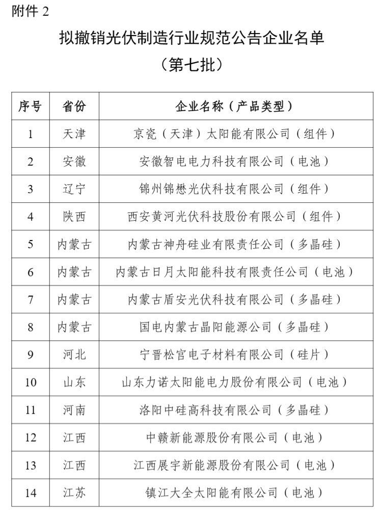2.擬撤銷光伏制造行業(yè)規(guī)范公告企業(yè)名單(第七批)