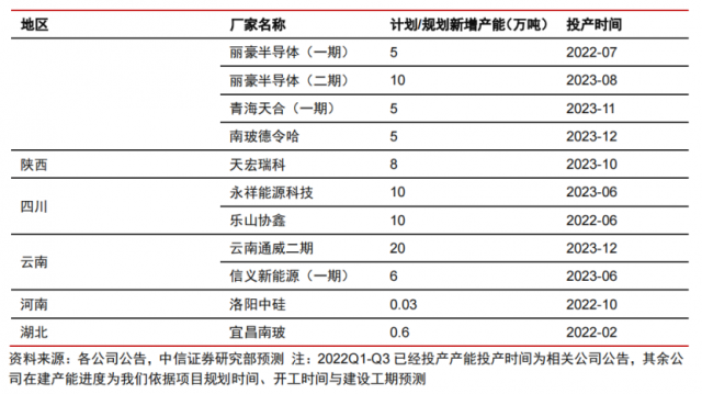據(jù)悉,三氯氫硅為多晶硅生產(chǎn)及硅烷偶聯(lián)劑生產(chǎn)的必備原材料。中國(guó)為多晶硅的主要生產(chǎn)者,且新增產(chǎn)能主要集中于中國(guó)。多晶硅產(chǎn)能擴(kuò)張十分迅速,中信證券王喆在10月11日發(fā)布的研報(bào)中統(tǒng)計(jì)得到,2022年新增產(chǎn)能將達(dá)約70萬(wàn)噸,2023 年預(yù)計(jì)新增產(chǎn)能約164萬(wàn)噸。