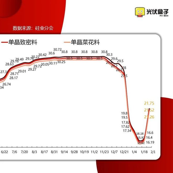 2023年2月1日硅業(yè)分會(huì)發(fā)布最新硅料價(jià)格,漲幅超31%。