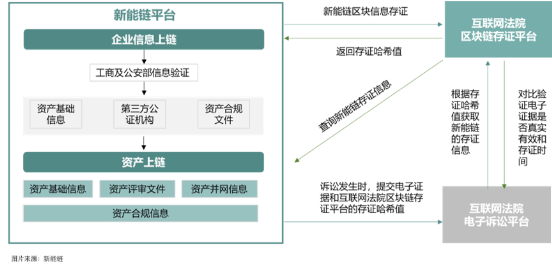 新能鏈充分發(fā)揮北京互聯(lián)網(wǎng)法院“天平鏈”核心節(jié)點的優(yōu)勢,通過將資產(chǎn)的基礎(chǔ)信息、質(zhì)量信息、收益信息等數(shù)據(jù)上鏈存證,使數(shù)據(jù)具備司法級效力,實現(xiàn)了電子數(shù)據(jù)全流程記錄、全鏈路可信、全節(jié)點見證。