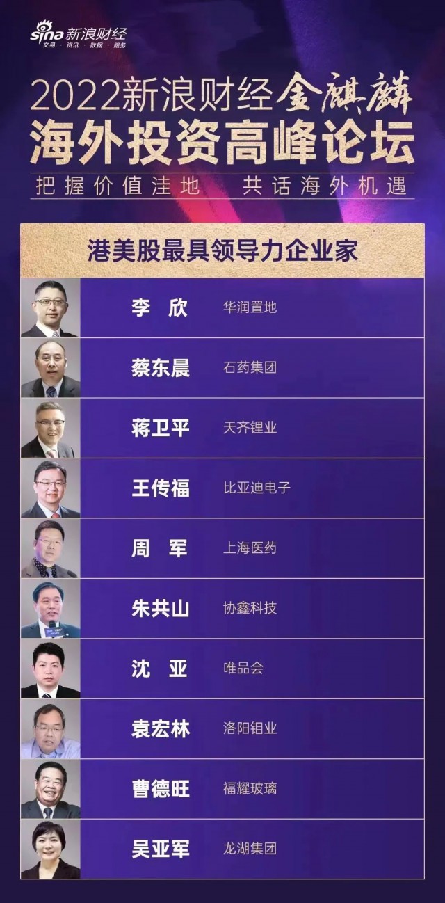 2022年9月23日,在新浪財(cái)經(jīng)主辦的2022年金麒麟海外投資峰會(huì)暨港美股最佳上市公司評(píng)選活動(dòng)中,協(xié)鑫科技(03800.HK)憑借在光伏材料領(lǐng)域的科技創(chuàng)新與行業(yè)貢獻(xiàn),榮膺“2022新浪財(cái)經(jīng)港美股最具成長(zhǎng)潛力上市公司”,協(xié)鑫科技董事局主席朱共山先生榮獲“2022新浪財(cái)經(jīng)港美股最具領(lǐng)導(dǎo)力企業(yè)家”稱號(hào),獲授該稱號(hào)的還有曹德旺、王傳福等10位杰出企業(yè)家。