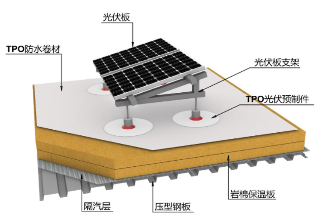 TPO優(yōu)良的耐老化性能與耐腐蝕性能,其實際使用壽命可達(dá)30年,與分布式光伏系統(tǒng)25年使用壽命匹配,提高了整個光伏發(fā)電系統(tǒng)全生命周期收益。