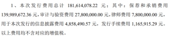 晶科科技發(fā)行費用總額為1.82億元,其中,保薦和承銷費用1.40億元。