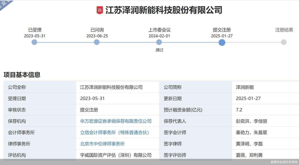 深交所官網(wǎng)顯示,澤潤新能創(chuàng)業(yè)板IPO已于近日提交注冊。