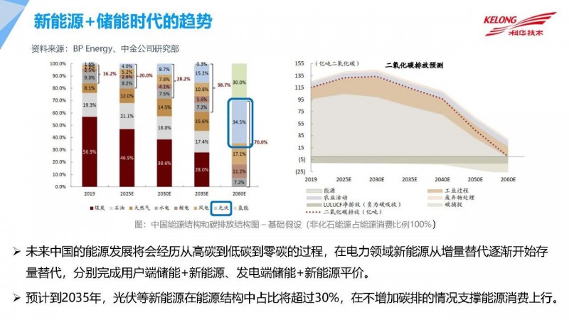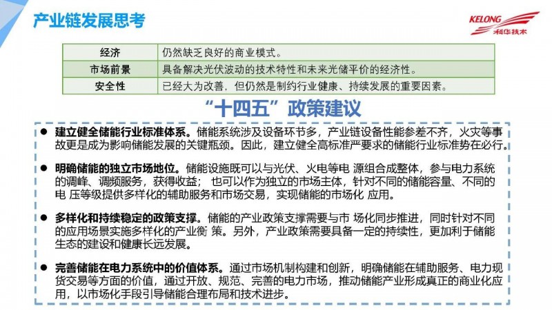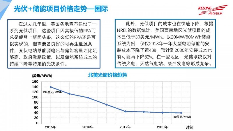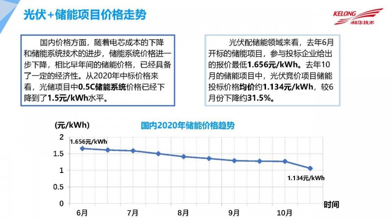 2021年2月3日,由中國(guó)光伏行業(yè)協(xié)會(huì)主辦的“光伏行業(yè)2020年發(fā)展回顧與2021年形勢(shì)展望網(wǎng)絡(luò)研討會(huì)”上,科華數(shù)據(jù)股份有限公司新能源事業(yè)部副總經(jīng)理曹建從多方面介紹了我國(guó)目前光伏+儲(chǔ)能行業(yè)的最新情況以及未來展望。曹建總經(jīng)理表示,未來中國(guó)的能源發(fā)展將會(huì)經(jīng)歷從高碳到低碳再到零碳的重要階段,光伏未來將在我國(guó)發(fā)電體系中占比越來越高。儲(chǔ)能能夠較好的降低光伏發(fā)電成本,全球角度來看,儲(chǔ)能項(xiàng)目在五年的時(shí)間內(nèi)降低了近4倍。未來光伏+儲(chǔ)能將創(chuàng)造更多更加安全可靠的光伏發(fā)電場(chǎng)景,同時(shí)其具備快速響應(yīng)電網(wǎng)調(diào)頻等眾多優(yōu)勢(shì),將是未來新能源電力市場(chǎng)發(fā)展的必然趨勢(shì)之一。