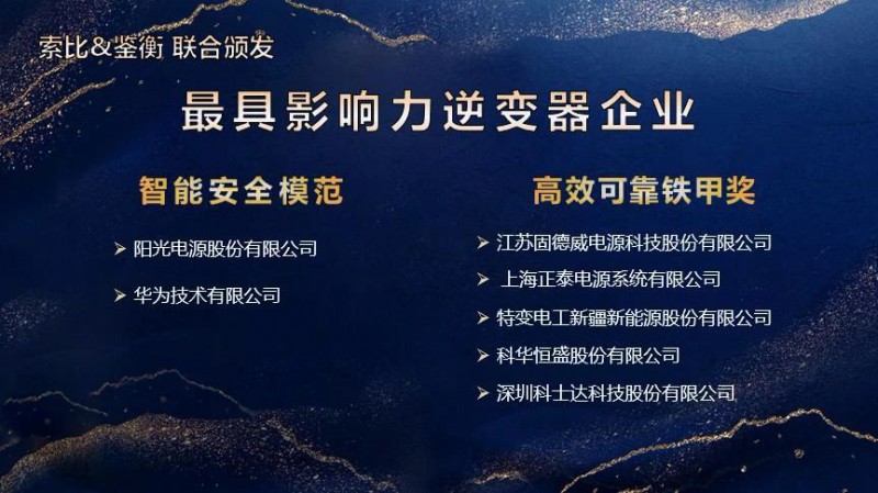 延續(xù)上一屆聯(lián)合頒布獎項,此次,鑒衡與索比根據(jù)2020年光伏企業(yè)綜合表現(xiàn),聯(lián)合推出年度“最具影響力組件企業(yè)”及年度“最具影響力逆變器企業(yè)”。
