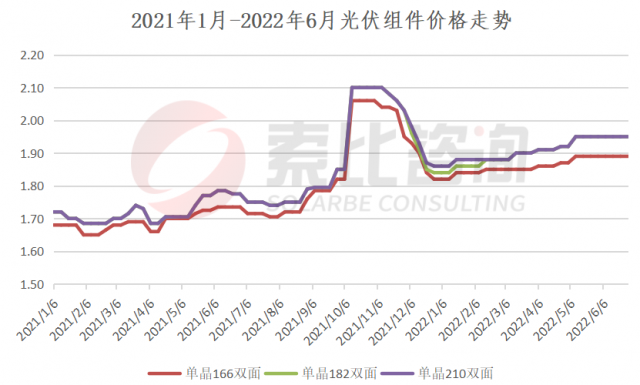 也有不少業(yè)內(nèi)人士紛紛表達了對于本次電池片漲價對于組件的連帶影響。有觀點認為,按照電池1.26元/瓦的價格,組件成本至少要到2元/W。作為對比,2020年-2021年,光伏組件的成本大約在1.4元/W-1.6元/W。還有觀點認為,1.95元/W是國內(nèi)電站能承受的價格極限,當組件價格高于1.95元/W時,組件招標量明顯下降。