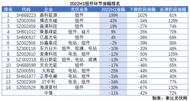 值得注意的是,同樣受硅料價(jià)格暴漲盈利能力承壓的組件環(huán)節(jié)的表現(xiàn)遠(yuǎn)不及電池片環(huán)節(jié),平均漲幅僅為-11%,其中缺少全球化渠道布局的二三線廠商跌幅居前,而晶科能源、晶澳科技、隆基綠能三大組件巨頭均取得了正收益,但除了剛剛上市的晶科能源以外,漲幅相對(duì)有限。