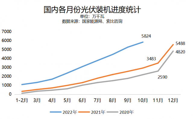 與9月單月新增裝機(jī)8.13GW的“壯舉”相比,10月單月新增5.64GW似乎有些“偏少”,環(huán)比出現(xiàn)下滑,結(jié)合此前三峽能源(SH:600905)公告中提到的“光伏組件價(jià)格始終維持在較高水平、年底大規(guī)模進(jìn)行組件安裝的可能性很小、項(xiàng)目建設(shè)進(jìn)展不及預(yù)期”等說(shuō)法,難免會(huì)讓部分從業(yè)者擔(dān)心,今年四季度的搶裝潮能否如約而至,全年裝機(jī)規(guī)模能否達(dá)到業(yè)內(nèi)預(yù)期水平。