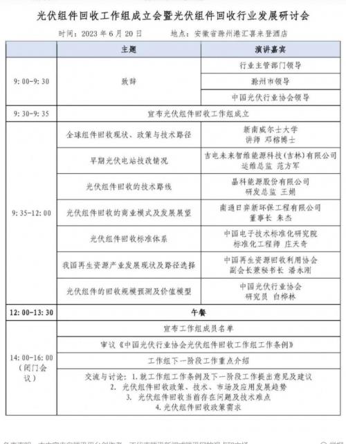 6月7日,中國光伏行業(yè)協(xié)會發(fā)布通知,協(xié)會將于2023年6月20日在安徽滁州召開“光伏組件回收發(fā)展研討會”,從光伏組件回收的現(xiàn)狀、技術路徑、規(guī)模預測、價值與經(jīng)濟性分析、商業(yè)模式等維度,與研究機構、行業(yè)組織、回收處理企業(yè)、電站投資與運營企業(yè)等業(yè)內(nèi)嘉賓共同分析探討光伏組件回收發(fā)展等焦點問題。