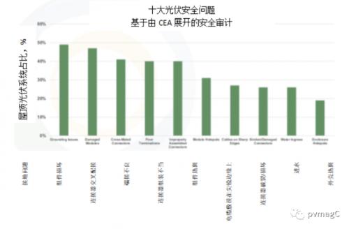 CEA發(fā)現,接地問題大多發(fā)生在逆變器或設備焊盤、光伏陣列塊和組件橫排之間以及延伸的導管沿線,這些構成最常見的安全問題。該公司還發(fā)現,組件損壞通常是由于安裝或清潔方法不當造成的,包括在組件上行走以及遭遇冰雹或大風等極端氣候事件。