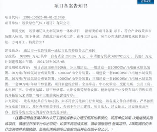 據(jù)悉,該項(xiàng)目位于通遼市扎魯特旗通遼市扎魯特旗魯北產(chǎn)業(yè)園,由遠(yuǎn)景綠色氣體(通遼)有限公司實(shí)施,項(xiàng)目總投資98.4億元,計(jì)劃建設(shè)起止年限:2024/03至2028/08。