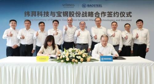 緯湃科技亞太區(qū)采購(gòu)及供應(yīng)商質(zhì)量管理部總監(jiān)陳珺與寶鋼股份總經(jīng)理助理、營(yíng)銷中心總經(jīng)理彭俊作為雙方代表簽署戰(zhàn)略合作協(xié)議。緯湃科技中國(guó)區(qū)總裁顧睿華(Gregoire Cuny)以及寶鋼股份黨委常委兼副總經(jīng)理胡宏等雙方有關(guān)領(lǐng)導(dǎo)出席并見證了這一里程碑時(shí)刻。