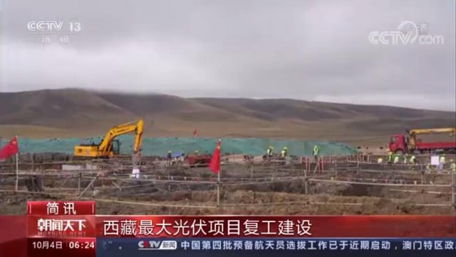這是西藏最大的光伏保供項目——西藏華電那曲色尼區(qū)12萬千瓦光伏發(fā)電電力保供項目建設現(xiàn)場場景。