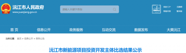 2月17日,湖南省沅江市人民政府下發(fā)《沅江市新能源項(xiàng)目投資開(kāi)發(fā)主體比選結(jié)果公示》,共下發(fā)了1.58GW,包含1.38GW光伏項(xiàng)目、0.2GW風(fēng)電項(xiàng)目。