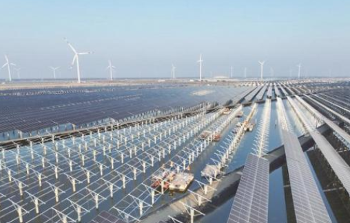 2月20日,施工人員在施工現(xiàn)場加緊建設(shè)。連日來,如東沿海的華能如東200兆瓦“漁光互補”光伏發(fā)電項目快速有序推進。該項目占地面積3000余畝,建成后,年均發(fā)電量約23390萬千瓦時,相當(dāng)于每年節(jié)約標(biāo)煤7萬噸,減排二氧化碳15.43萬噸。