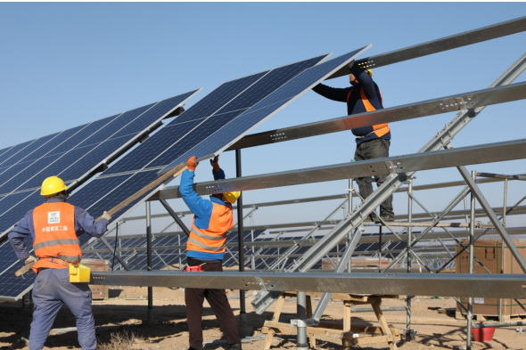 一望無垠的荒漠戈壁里,光伏藍海在陽光下熠熠生輝,與光熱儲能板塊、風電板塊遙相呼應(yīng),“建”證著建設(shè)者在“沙戈荒”上追“光”逐“日”。中建二局將始終聚焦國家發(fā)展戰(zhàn)略,以實際行動為綠色中國貢獻更多力量。(麻倩、劉慶安)